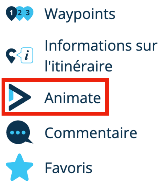 Ce tutoriel utilise Animate pour les itinéraires comme exemple. Animate pour les tracklogs fonctionne de la même manière qu'Animate pour les itinéraires.